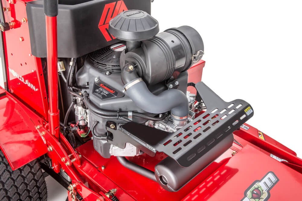 With 32, 36, 48, 52, and 60-inch models, powered by Kawasaki FX730V or FS600V engines and a height adjustment knob for a precise cut, the Venom Stand-On Mower provides many options to suit each user’s needs. The fold-up operator platform feature makes it easy to convert it from a stand-on to a walk-behind mower and also allows for more units on a trailer.
